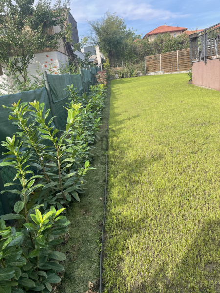 A saját használatú lekerített 232nm-es kert, intim, de még további lehetőséget nyújt a kertrendezésnek.