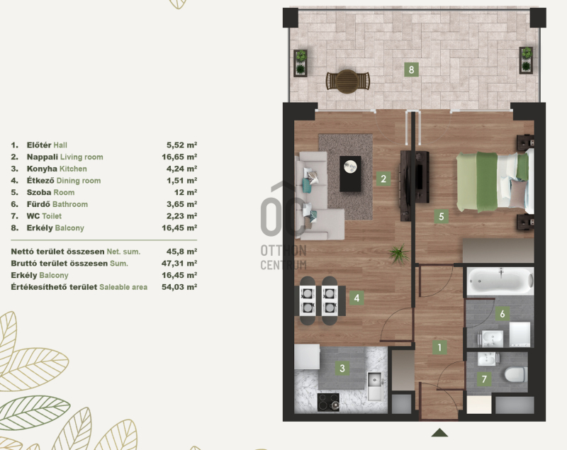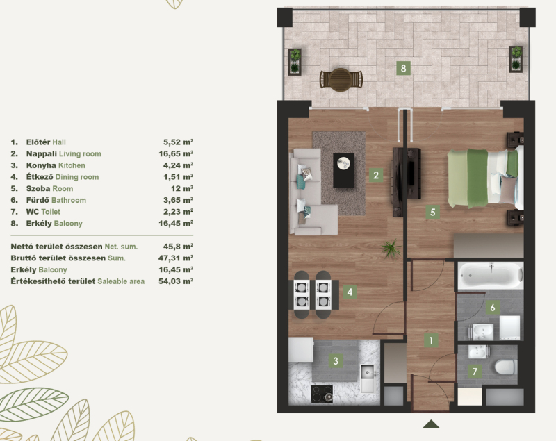 A gyönyörű kilátás nyugalma a városi nyüzsgés harmóniájával. A Berry’s minden lakásához tartozik loggia, erkély, vagy terasz!