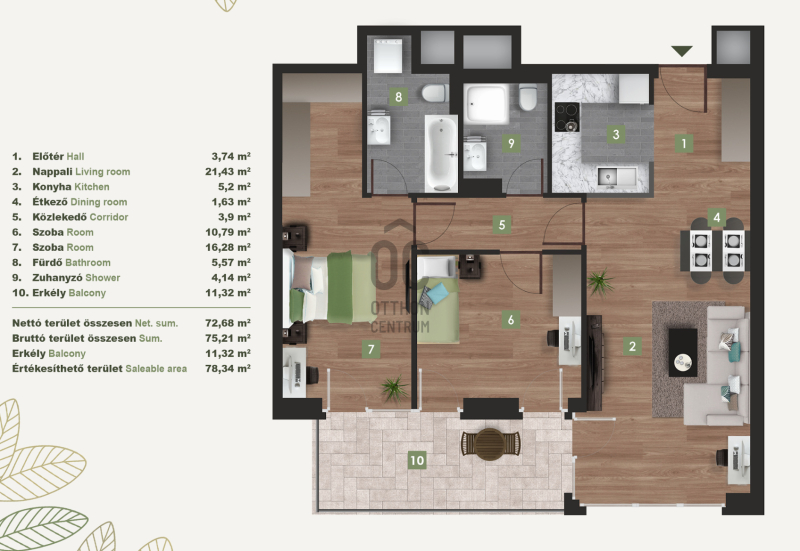 A legmodernebb mennyezeti hűtő- fűtő rendszernek köszönhetően alacsony fenntartási költségek várnak. A zöldtetők és az épület körüli zöldterületek nemcsak természetes hőszigetelést adnak, de a közösségi életet is támogatják.