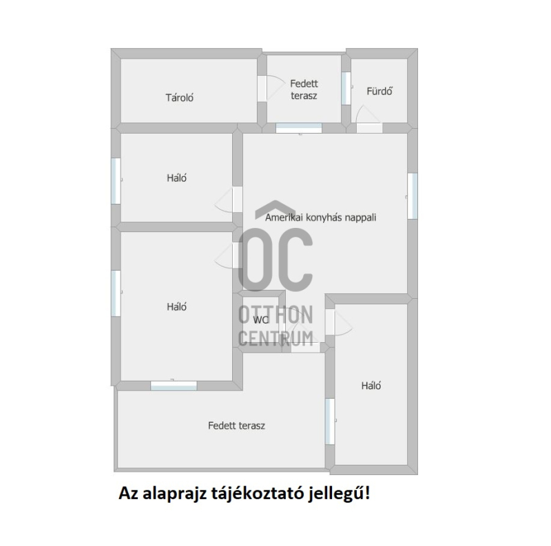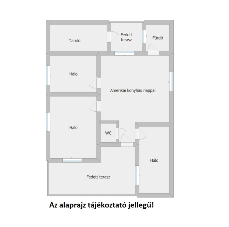 Elrendezés: amerikai konyhás nappali + 3 hálószoba