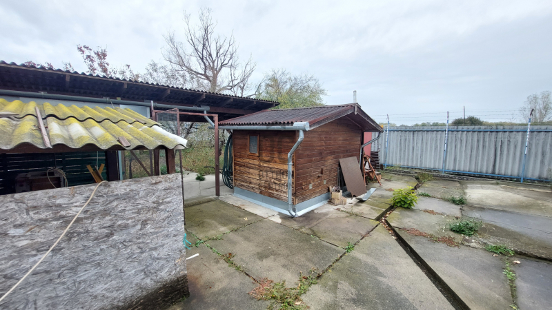 A telken több fedett tároló és egy szerelőaknás garázs is található, de a telken több jármű részére is biztosított a parkolás.