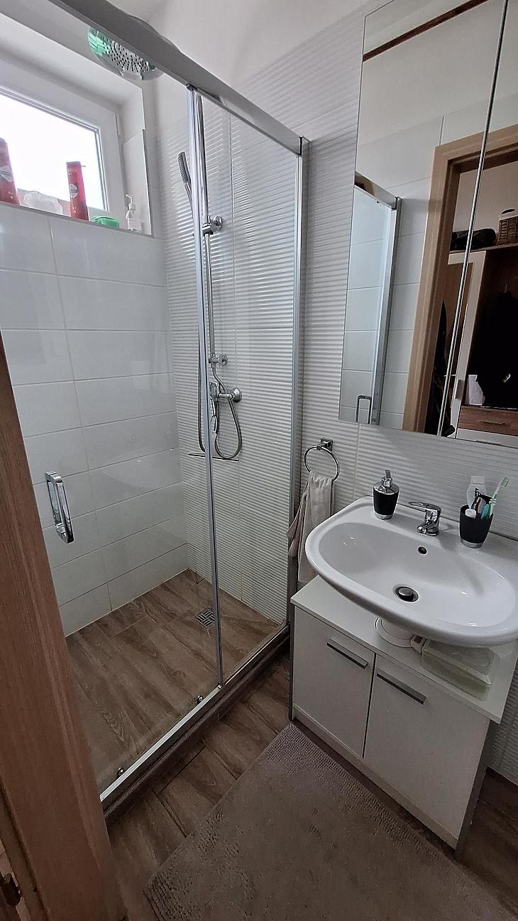 Fürdőszobákban és az előszobában járólap, míg a többi helyiségben laminált parketta található.