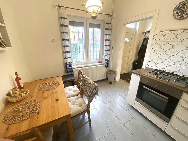 A ház 1940-ben épült, cserép fedésű, szerkezetileg masszív, családi ház. A fürdőszoba teljes felújításon esett át. A konyha gépesített bútorokkal felszerelt. A szobákban faparketta található.