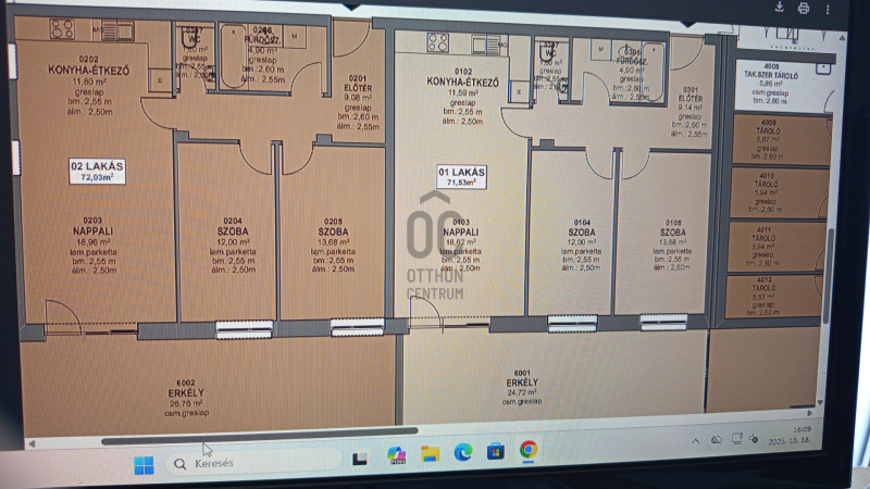 Tetőtér 18. lakás: 50,55 m2 (Valójában 63,85 m2) + 14,33 m2 erkély ennek a bruttó ára: 83 800 000 Ft.