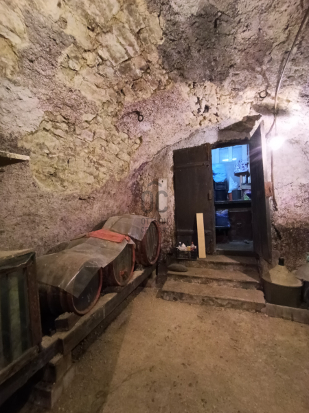 A kő falazatú ház külső alapterülete 72 nm, a két lakószintjének össz hasznos területe 75 nm. Az alsó szinten a hosszú folyosó mentén egy lakószobát, konyhát, fürdőszobát és két kis félszobát találunk, az emeleti részen egy nagyobb és egy kisebb szobát és a teraszt. Cserépfedés, gáz központi fűtés, nagy szerszámos tároló, kerti ásott kút, 290cm-es belmagasság és egy 20 nm-es borospince - mindez jellemzi még.