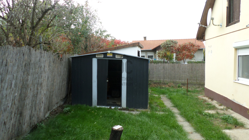 A 350 négyzetméteres telken található rendezett kert tökéletes helyszín a pihenésre, a szabadidős tevékenységekre, és ha van kisállatod, az is boldogan élhet itt. A kerti tárolók pedig praktikus megoldást kínálnak a kerti eszközök és egyéb holmik tárolására. A telken áll egy mobil lemez garázs, mely egy autó elhelyezésére szolgál.