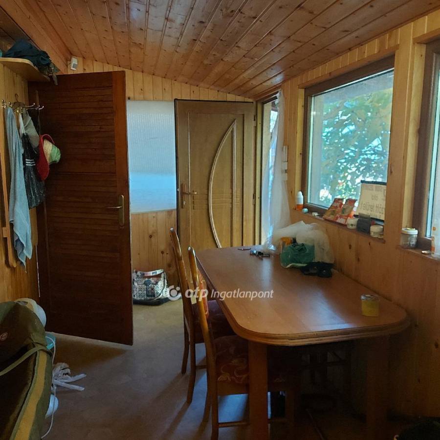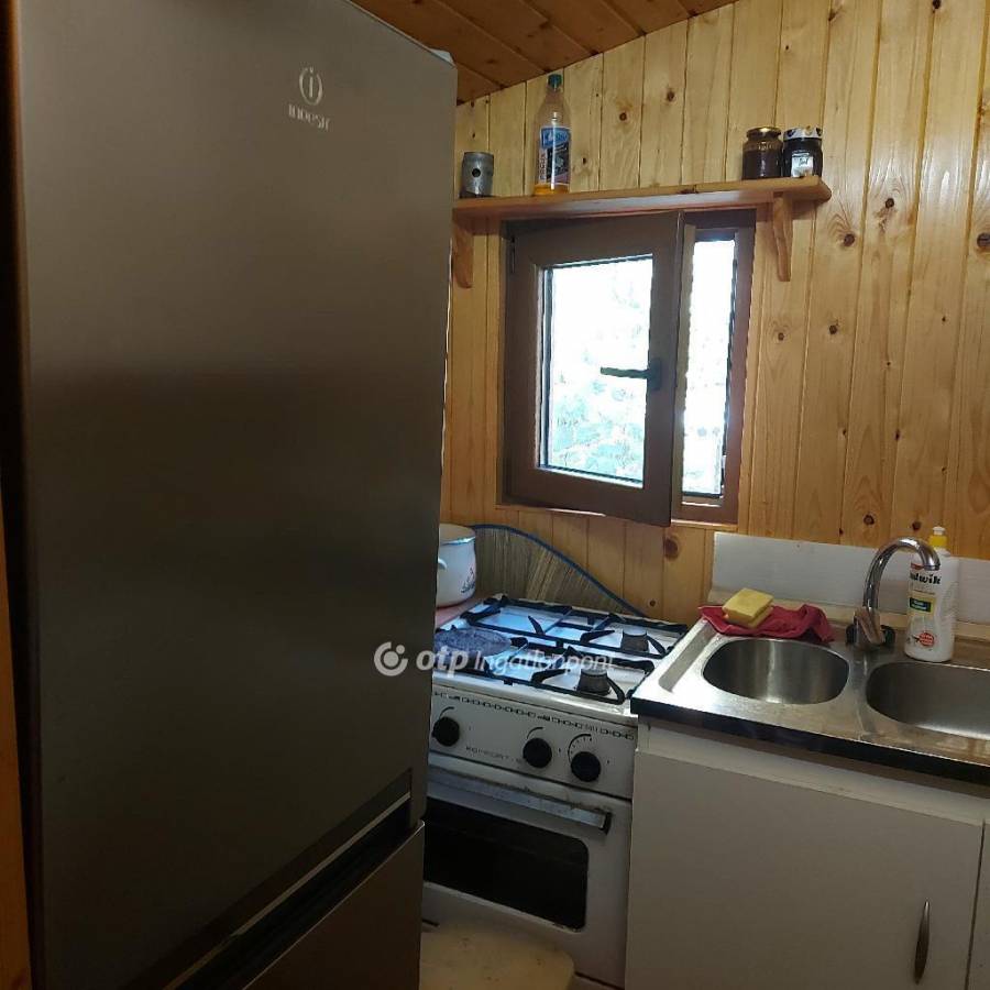 Belül minden fenyő burkolatú, a helységek vékony OSB lapokkal elválasztották, de lakható, a téli napokra egy kandalóval is ellátott. Egy nagy szoba, étkezős nagy előtér,ami akár szintén szoba is lehet, konyha mindennel ellátva, és zuhanykabinos, wc-s fürdő szolgálja a pihenésre vágyókat. A háló ablakai redőnyösek.Az épület mögött füves kert,a kert végében nagy nyárfák,fenyő és gyümölcsfák.Az előkertben hatalmas diófa nyújtja az árnyékot.