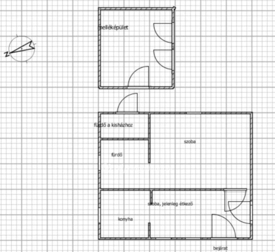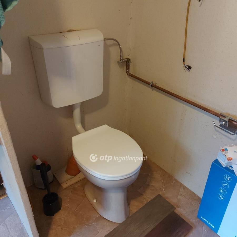 A kert másik hátsó részében egy 15 m2- es melléképület található beton aljzatok, felújítandó, de jó kialakítású,árammal ellátott.  A  főépület hátsó részében ehhez a kis házhoz tartozik egy külőn fürdő. Bojler, víz működik, wc még nincs a helyén újítgatásra szorul. De a kis épülettel együtt ha befejezésre kerül, kiadásra tökéletes lehet.