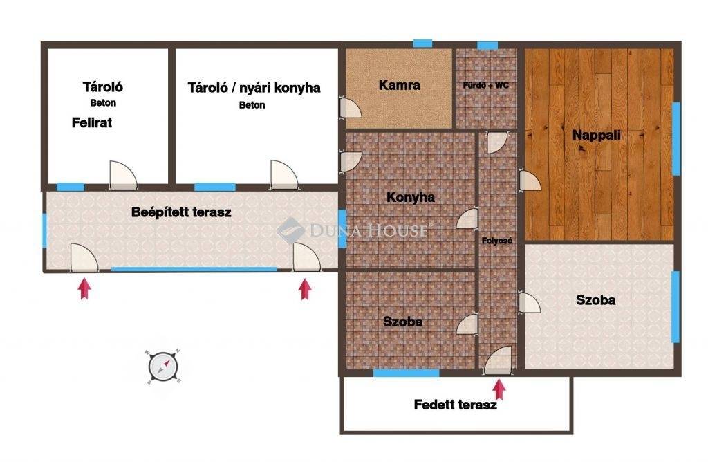 Eladásra kínálok Mezőfalván, csendes utca végén egy 121 m2-es családi házat. Az ingatlan az 1970-es években épült, igény szerint felújítandó, 2 hálószoba, nappali, konyha, fürdő és kamra helyiségből áll. A ház hasznos alapterülete 77,5 m2, a fennmaradó 43,9 m2 gazdasági épületként terveken feltüntetve, lakóépülettel részben egybenyitva. A nagy hálószoba, nappali és konyha fűtése konvektoros, fürdőben kis kályha gondoskodik a melegről. Közművek lakáson belül (víz, villany, csatorna és gáz) A telken több gazdasági épület is van illetve ipari áram megtalálható. A környék nyugodt, forgalomtól mentes. Az ingatlan előtt nagy területen fákkal tarkított terület van. A kert egy másik útról külön megközelíthető, így akár kiadásra is alkalmas.  15 perc sétával elérhető óvoda, posta, boltok, gyógyszertár. Székesfehérvár 40 perc, Budapest autópályán 1 óra, Dunaújváros 20 perc autóval. Ha hirdetésem felkeltett érdeklődését, várom jelentkezését elérhetőségeim valamelyikén.