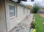 Az udvar gondozott, részben térkövezett, árnyas, barátságos környezet veszi körül a házat. A csendes, nyugodt utca igazi felüdülést nyújt, mégis pár perc alatt elérhető a városközpont, üzletek, iskola, gyógyszertár.