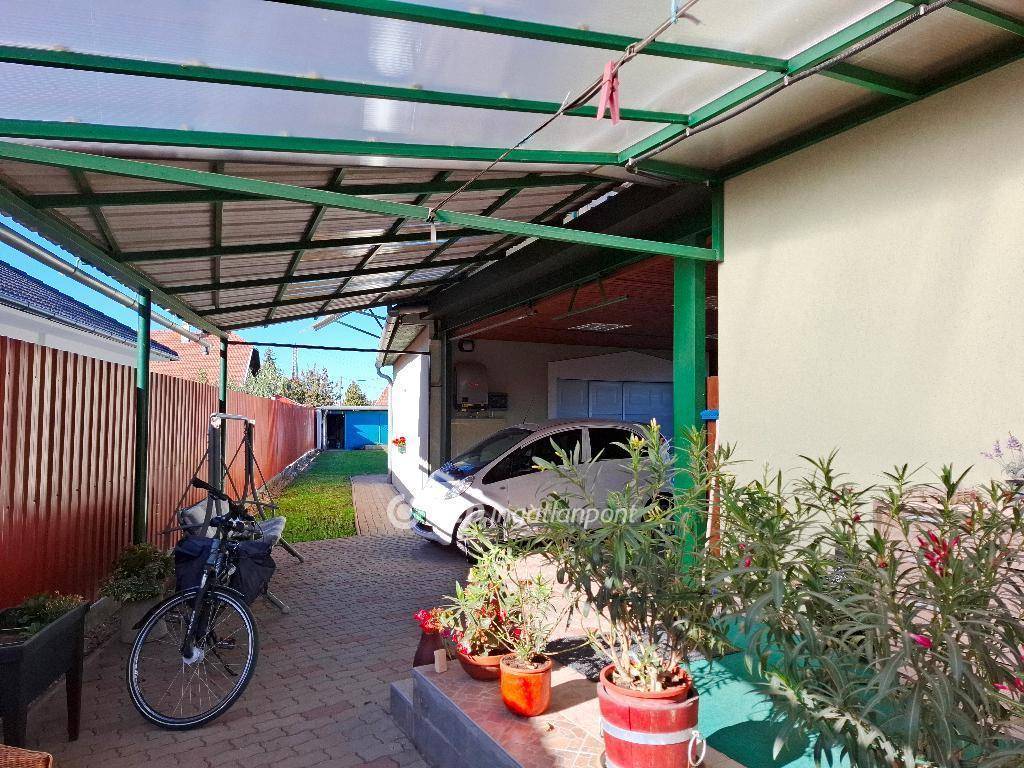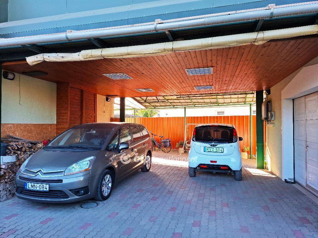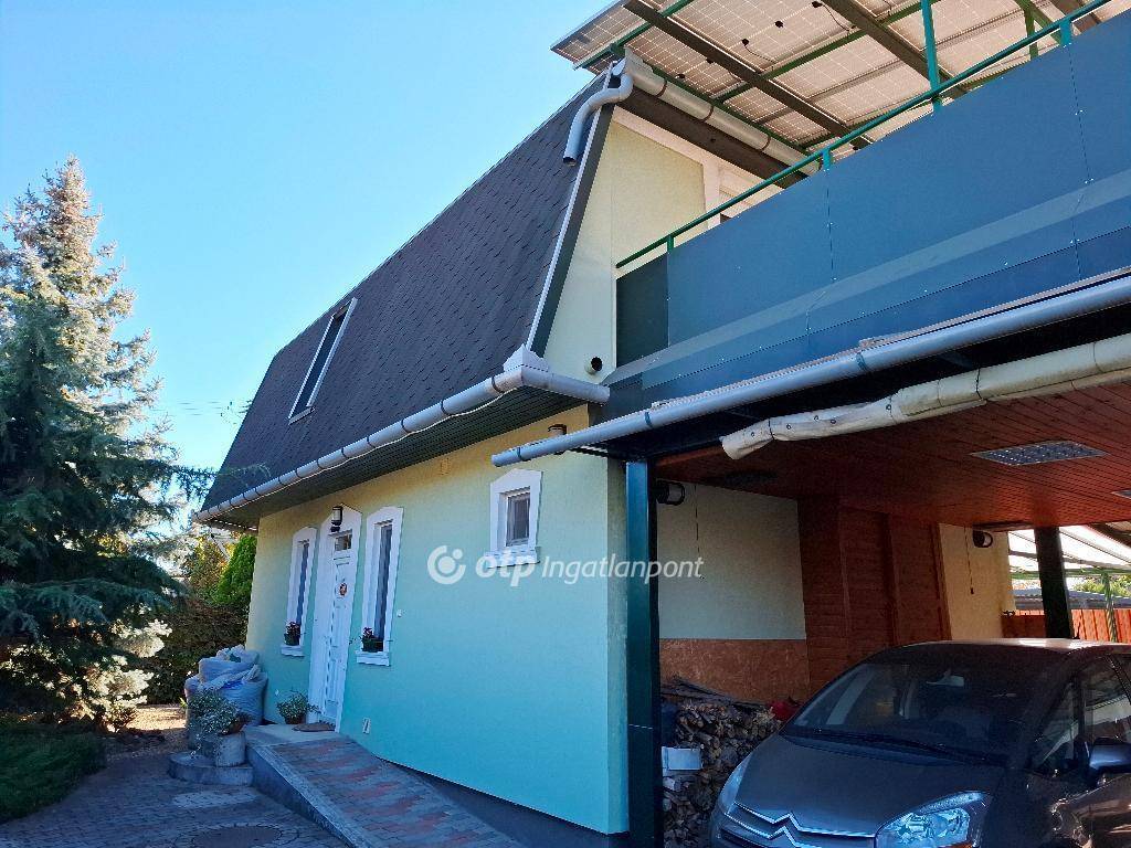 Békéscsabán 117 nm-es családi ház eladó. A két szintes, szigetelt könnyű szerkezetű ingatlan, csendes kertvárosi környezetben, 622 nm-es telken a kastélyszőlőkben helyezkedik el. A földszinten előszoba, amerikai konyhás nappali,  kamra, fürdőszoba, wc,  háztartási helyiség, míg az emeleten 3 félszoba, fürdőszoba, Wc, közlekedő és gardrób kapott helyet. Az emeleti szobák laminált parkettások, a többi helyiség hidegburkolatú. a nappaliban kandalló, az otthon melegét 10 Kw-os napelem biztosítja a földszinten padlófűtésen, az emeleten radiátorokon keresztül, ezért a rezsi minimális. Az épületbe 3 x 32 amperes villamos hálózat került bekötésre, illetve 3 db hűtő, fűtő klíma van felszerelve. A szépen gondozott kertben virágok, örökzöldek és szerszám tároló található. A fő épületet és a garázs épületet összekötő  tetőterasz alatt két kocsi részére elegendő beálló van, ahol az elektromos töltés is elvégezhető. Nagyon jó állapotú és elrendezésű ingatlan, ahol a fenntartási költség minimális. Akár otthon start 3%-os hitelre is megvásárolható. Ügyfeleinknek jogi és ingyenes pénzügyi szolgáltatást nyújtunk.