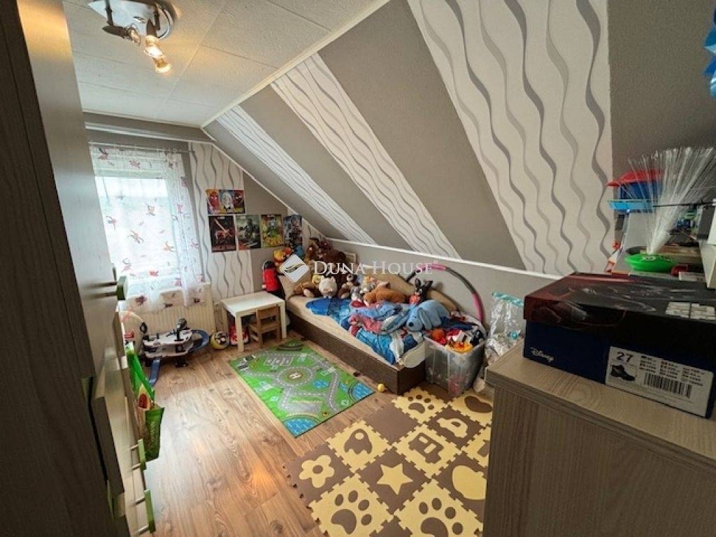 A legfelső emelet egy kicsit kisebb a tető miatt, de tökéletesen ki van alakítva ott is minden.