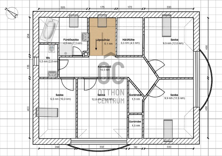 •Bruttó alapterület: 316,93 m² + kb. 30 m² padlás