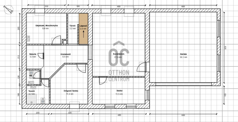 •Garázs: kétállásos (40 m²), közvetlen bejárattal a házba