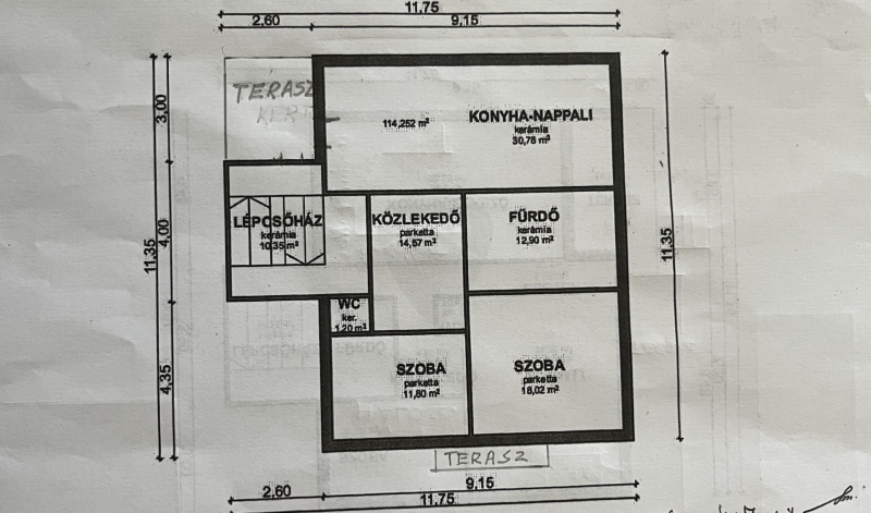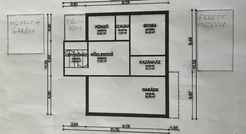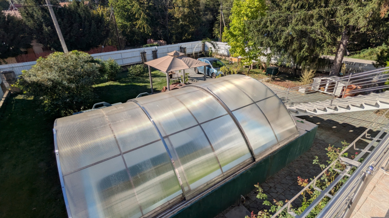 A 350 m²-es főépülethez egy 30 m²-es műhely-garázs, 25 m²-es fedett terasz és 12 m²-es napozóterasz kapcsolódik, így a teljes beépített terület meghaladja a 400 m²-t. Tágas elrendezése révén két generáció számára is kényelmes otthon, de vállalkozás működtetésére is alkalmas.