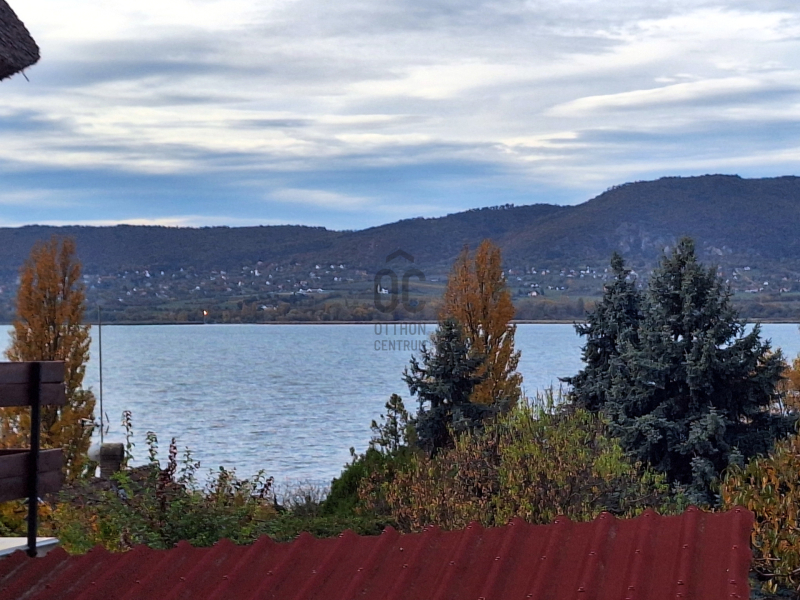 A nyaraló teraszáról két irányban is látható a Balaton. Az ingatlan felújítandó állapotú.