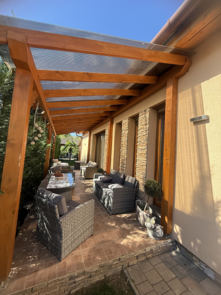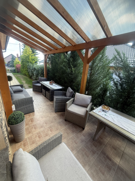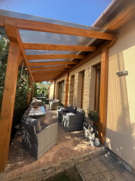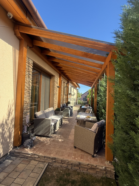 Győrújbarát központi, de mégis csendes panorámás zsákutcájában kínálok eladásra egy nagyon impozáns, modern, minden igényt kielégítő családi házat.