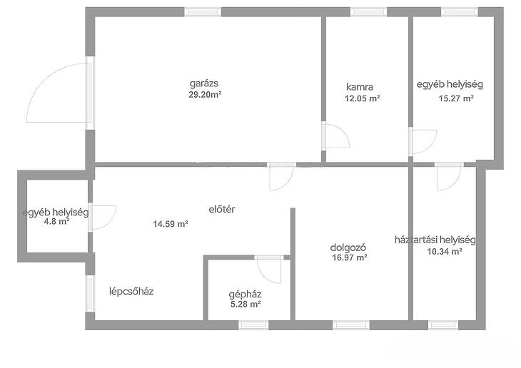 A házhoz tartozik egy 107 m²-es szuterén szint is, mely lakótérnek is alkalmas, valamint magába foglal egy 29 m²-es garázst is.