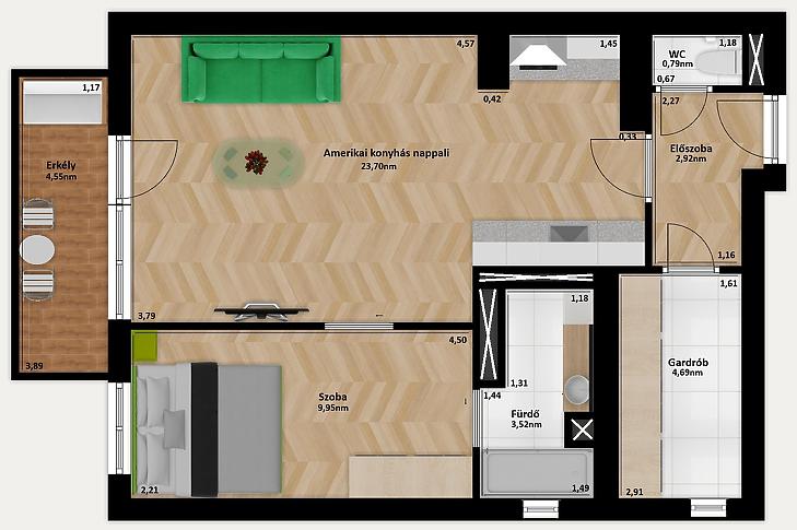 A lakás 2 havi kaució és az első havi bérleti díj megfizetésével azonnal költözhető.