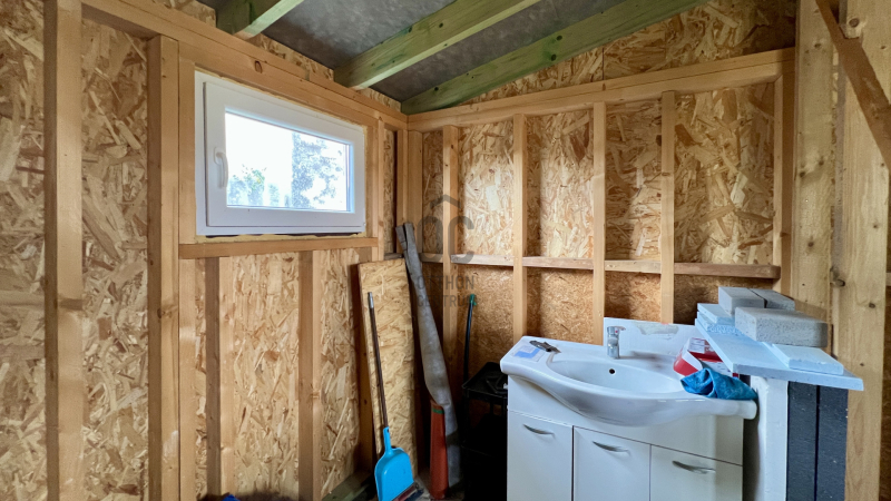Tulajdonosa a tó közelsége miatt vásárolta meg az ingatlant, ami építési telek. Egy könnyűszerkezetes melléképületet épített a telekre, ami a későbbi építkezéshez szállásként, illetve anyagtárolóként is funkcionálhatna. A melléképületben bevezetve a villany, de a végső fogyasztók és a vezetékek még nem kerültek elhelyezésre. Az épületbe be van vezetve a szennyvíz és víz is, de a belső hálózat nincs kialakítva. Egy külső WC-t is elhelyezett a területen, ami szintén rá van kötve a víz és szennyvízhálózatra.