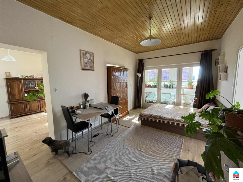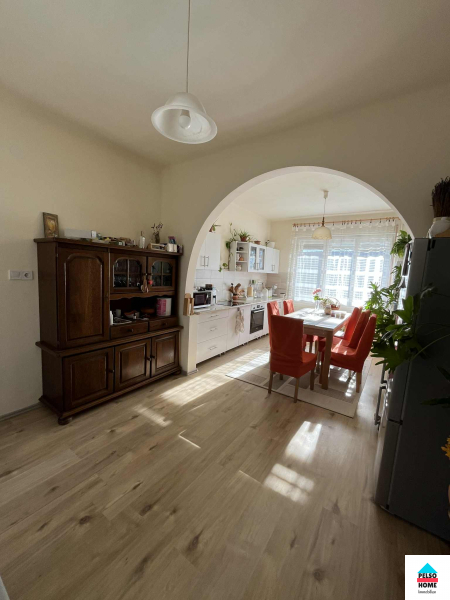 Dieses 100 m² große Familienhaus aus dem Jahr 1975 steht im ruhigen Dorf Karád zum Verkauf. Das Haus liegt auf einem Hügel, verfügt über ein hohes, massives Betonfundament und Ziegelmauerwerk, ist in einem guten baulichen Zustand und hat Trockenbauwände. Es bietet zwei große Zimmer, geräumiges Wohnzimmer, Wohnküche, Wintergarten, Badezimmer, separates WC, Speisekammer und Hauswirtschaftsraum. Die Räume sind hell, die Deckenhöhe beträgt 2,8 m. Im Jahr 2022 wurde das Haus umfassend renoviert: neue Fenster, ein neuer Kachelofen, zwei Klimaanlagen (Gree) heizen und kühlen, ein komplett renoviertes Badezimmer (Badewanne und Dusche) und separates WC sowie eine voll ausgestattete Küche mit Elektroherd, Backofen, Waschmaschine und Geschirrspüler. Das 1812 m² große Grundstück ist komplett eingezäunt, weitläufig und nach Osten hügelig – mit einem wunderschönen Panoramablick! Das Grundstück verfügt über zahlreiche Nebengebäude, Garagen, Holzschuppen und eine große Vielfalt an besonderen Pflanzen und Obstbäumen. Strom (3 x 32 A), Wasser, Abwasser und Gas (vorbereitet) sind vorhanden. Das Anwesen ist lastenfrei und die Eigentumsverhältnisse sind in Ordnung.