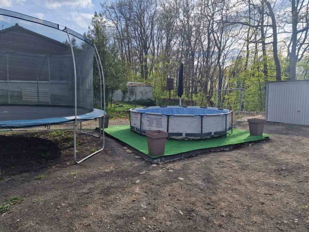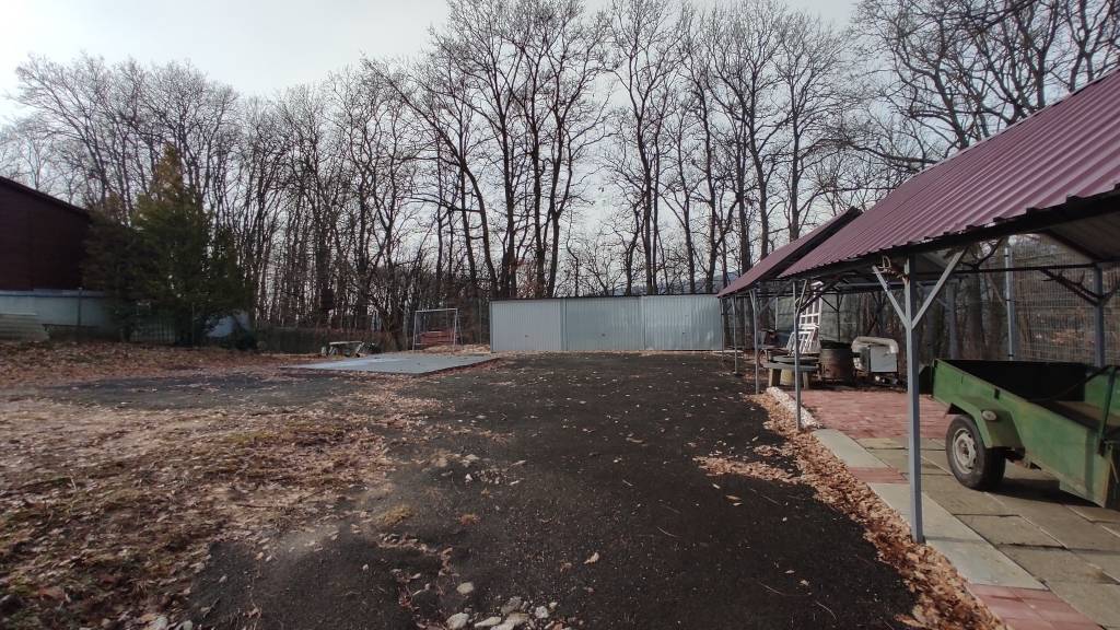 Az ingatlan teljesen sík, zúzalékkal feltöltött, fentieken túl betonozott aljzat is van rajta a medencének, az új kerítés magassága miatt szarvas, erőssége okán pedig vaddisznóálló, nem kell vadkárra számítani.
