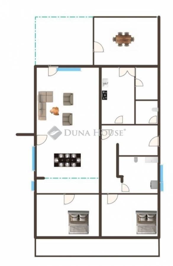 A kert nem csak a természet közelségét garantálja, hanem remek helyszín családi és baráti összejövetelekhez is. Az otthon melegségét kiegészíti a tájolásnak köszönhető kiváló természetes fényviszonyok, ami a mindennapokat még kellemesebbé teszi.