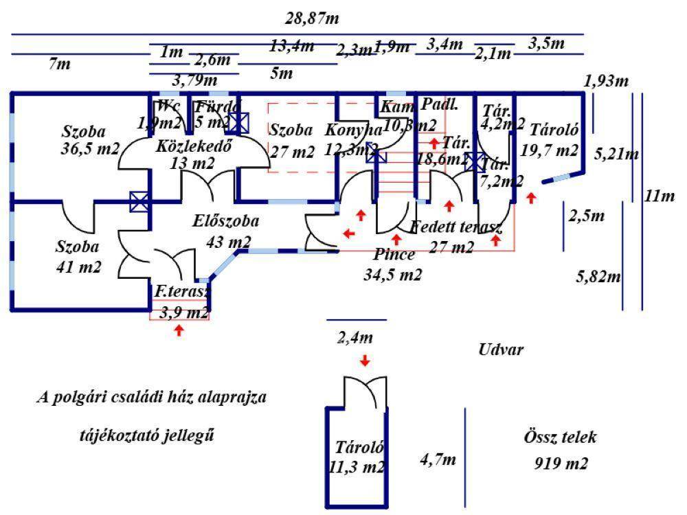 Bács-Kiskun vármegye, Kiskunfélegyháza központi részén 190 m2 hasznos alapterületű családi ház 919 m2 telken 61 m2 melléképülettel eladó. Az 1930-as években épült, komfortos ingatlan három szobából, egy előszobából, egy konyhából, egy kamrából, egy fürdőszobából, egy WC-helyiségből, egy közlekedőből, három - összesen 40 m2 nagyságú - udvarra nyíló tárolóból, egy 35 m2 nagyságú pincéből, valamint egy különálló 11 m2-es melléképületből áll. A családi ház vegyes falazattal, stukatoros fa gerendázott födémmel és zártsorú bakdúcos vörösfenyő tetőszerkezettel készült, melynek héjazata pala, részben csatornával ellátott. Az épület homlokzata jó állapotú festett, a tetőszerkezet ép, beázástól mentes. A külső- és belső nyílászárók eredetiek, normál állapotban vannak, az ablakok duplák, műanyag redőnnyel ellátottak. A szobák parketta-, a többi helyiség járólap borítást kapott. A közművekből az egyfázisú villany (25 Amper) részben rézre cserélt hálózattal, a vezetékes víz, a gáz, valamint a csatorna rendelkezésre állnak. Az otthon melegét helyiségenként gázkonvektor biztosítja, alternatív lehetőségként dísz cserépkályha is beépítésre került. Az ingatlan három gázbéléses és egy vegyestüzelésre alkalmas kéménnyel rendelkezik. A családi ház melegvíz ellátásáról Fég típusú víz átfolyós rendszerű, gázüzemű vízmelegítő, valamint egy Quadriga típusú hőtárolós bojler gondoskodik. Az ingatlan körben bekerített, az aszfaltozott csendes utcáról gépjárművek beállása kapubejáróval megoldott. Az udvar parkosított, rendezett. Az épület befektetői célra is alkalmas lehet, a födém szerkezete rendkívül masszív, a tető kialakítása és normál belmagassága miatt kb. 190 m2 hasznos alapterület beépíthető. A ház jelenleg nem lakott, birtokba adás azonnal lehetséges. A közelben 100 méteren belül élelmiszerbolt, iskola, Polgármesteri Hivatal, posta, gyógyszertár, óvoda, autóbusz-állomás elérhető. A hirdetés tájékoztató jellegű, az ingatlanról pontos adatokat a megtekintést követően a tulajdonos által elmondottak alapján tudunk garantálni! A vásárlás finanszírozásában az OTP kedvezőbb kamatozású hitelkonstrukcióival tudunk segíteni díjmentesen, sorban állás nélkül! Az adásvételi szerződés lebonyolításához korrekt ügyvédi közreműködést tudunk ajánlani. Amennyiben felkeltettem érdeklődését, hívjon bizalommal! Eladó ingatlanokat keresünk meglévő és új ügyfeleink részére!