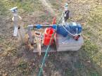 A telken felépítettek két beton aljzaton álló lemezszerkezetes garázst darabonként 6 X 3,5 m melyeket egy 4 X 6 m-es fedett tároló köt össze.