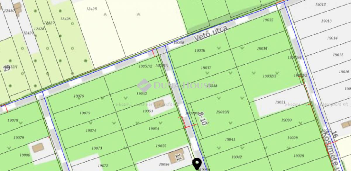 Beépíthetőség: 30% 4.5 méter épületmagasság, oldalhatáros építési mód 5m-es előkerttel, 40% zöldterület.