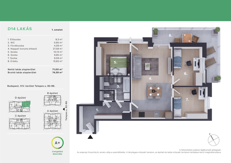 A jelen adatok tájékoztató jellegűek, ezért a Beruházó (sem a hirdető) azok változásával, vagy bármely attól való eltéréssel kapcsolatban semmilyen kötelezettséget, vagy felelősséget nem vállal.