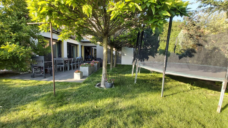 Kert: automata öntözőrendszer, privát belső udvar, pingpong asztal, trambulin, focipálya, gyermek homokozó és mászóvár