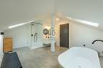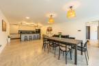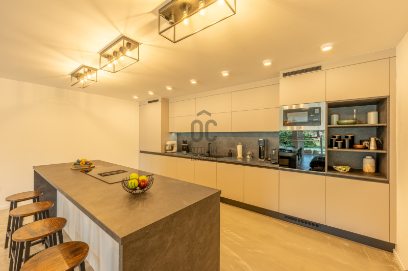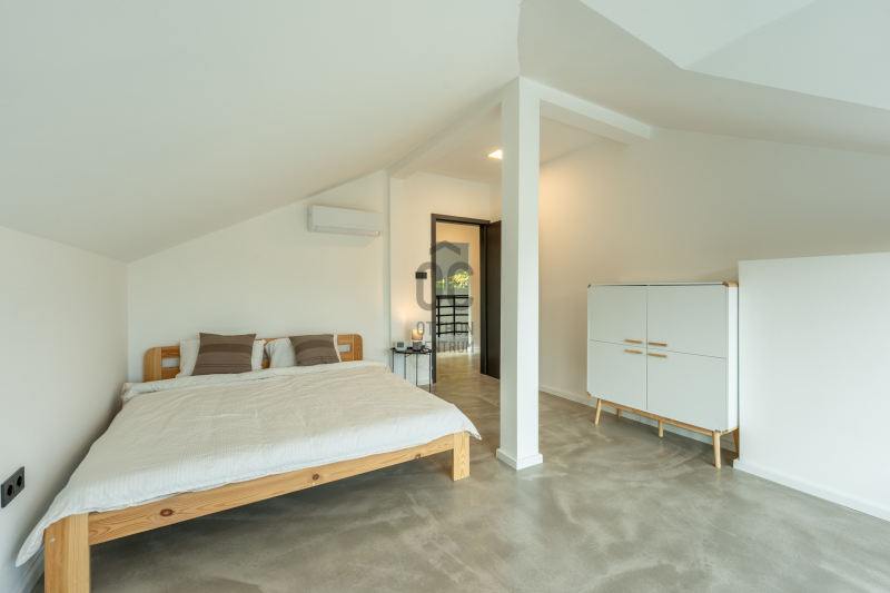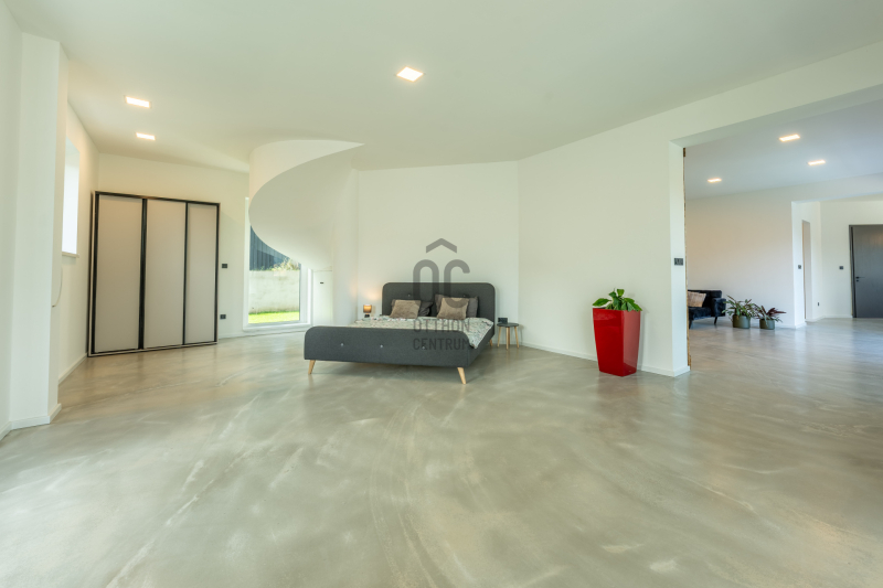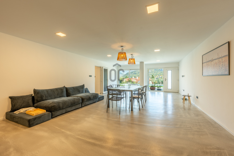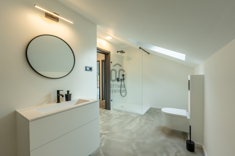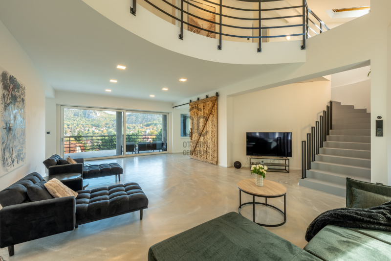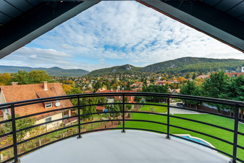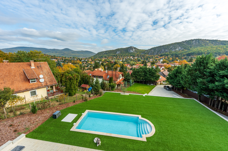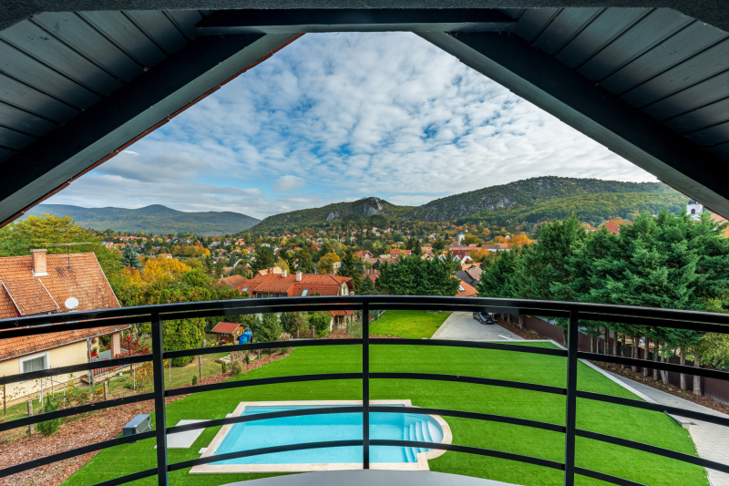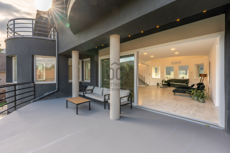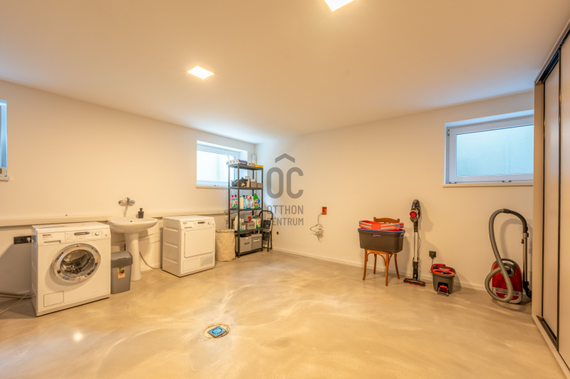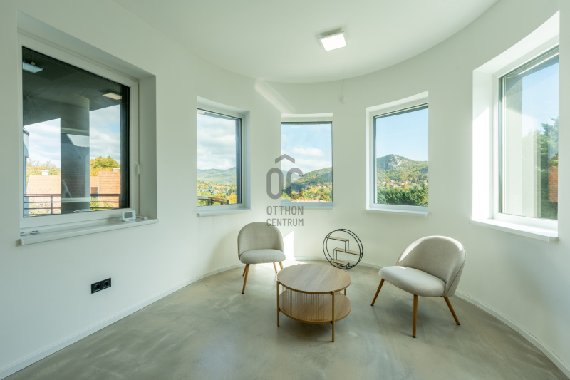 A ház minden helyisége bőséges természetes fényben fürdik, a nagy üvegfelületeknek köszönhetően pedig a környező hegyek és a zöldellő kert látványa szinte minden ablakból élvezhető. Az épület kialakítása a harmóniát és nyugalmat szolgálja, miközben minden modern kényelmet kínál a mindennapokhoz. Ez az otthon ideális választás mindazok számára, akik tágas, napfényes, természetközeli életteret keresnek a Pilis lábánál.