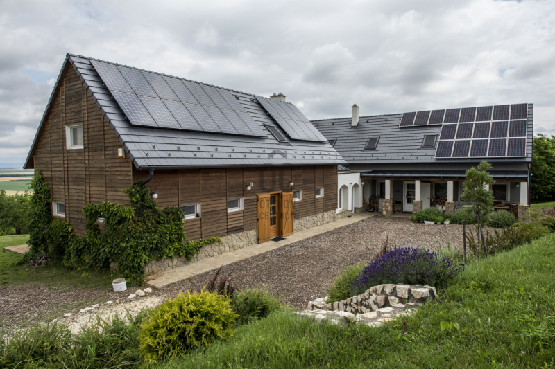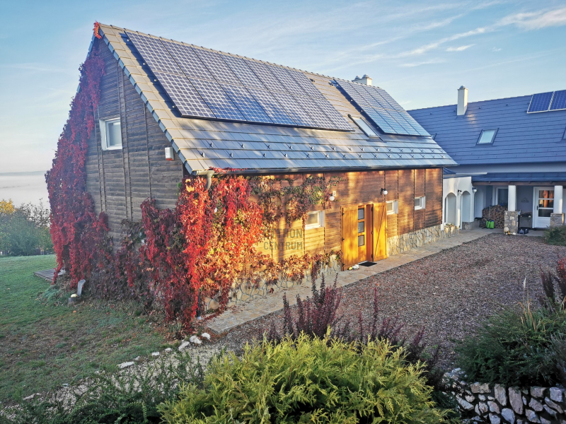 -14 Kwh napelem, mely a terület áramellátását és fűtését biztosítja.