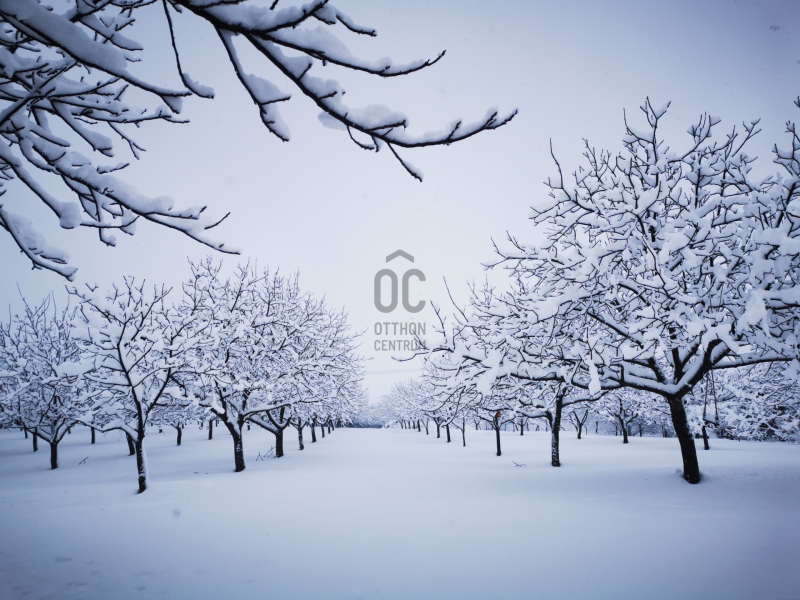 -Termő vegyes gyümölcsös (60db), öntöző rendszerrel.