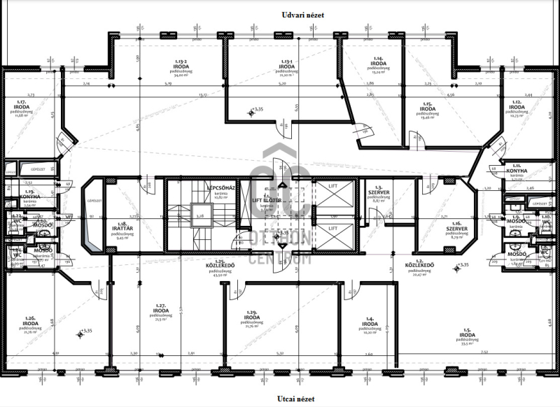 - több irodai blokk, több zárható és elkülönített tárgyaló