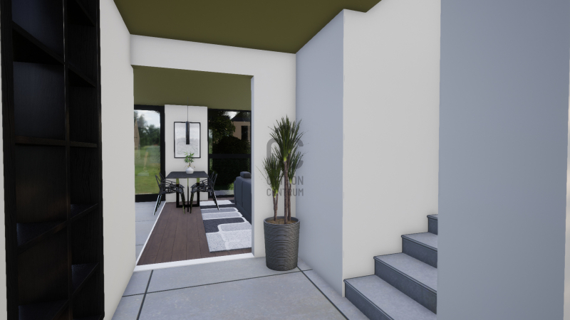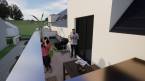 terasz kapcsolódik, mind az étkező-konyhából, mind a nappaliból önálló kijutási lehetőséget biztosítottunk a teraszra.
