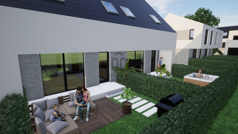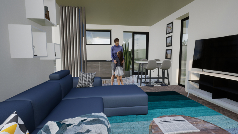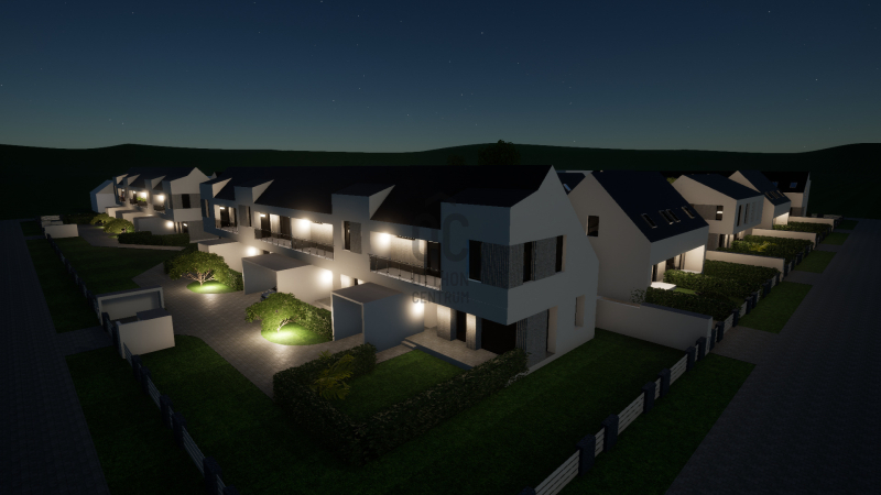 Nappali + 3 szobás, belső kétszintes lakás. A lakáshoz tartozik egy 8 nm-es fedett terasz és egy 6 nm-es tornác is. Az ingatlanhoz tartozik egy kötelezően megvásárolandó gépkocsi beálló, melynek ára 1,5 millió forint valamint saját udvarrésszel is rendelkezik. A lakóparkon belül játszótér, pihenőpark kerül kialakításra.