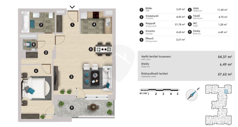 Ez a belvárosi lakás nem csupán egy otthon, hanem egy életstílus, amely a kényelmet és a modern technológiát ötvözi.A lakóparkban egyedi közösségi rendezvényterem iroda biztosítja a lakók kényelmét. Az ingatlan alapterülete 58 négyzetméter, amelyben két tágas szoba várja új lakóit, tökéletesen alkalmasak a pihenésre és a szórakozásra egyaránt. A fürdőszoba egyedi kialakítása és kiváló állapota minden igényt kielégít. A lakás egyik legnagyobb előnye az erkély, amely 6.5 négyzetméteres teret biztosít a friss levegő élvezetére, ideális helyszín egy reggeli kávéhoz vagy egy kellemes estéhez. Az ingatlan hőszivattyús fűtési rendszerrel rendelkezik, amely nemcsak energiatakarékos, hanem környezetbarát megoldás is. A légkondicionáló berendezés garantálja a kellemes hőmérsékletet a nyári hónapokban is. A lakás gépesített, így azonnal költözhető, és bárki számára könnyen berendezhető.