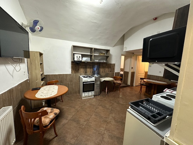 A belső kialakítása 10 darab kisebb szobából illetve két közösségi térből, több w,c, és zuhanyzóból áll jelenleg de igény szerint átalakítható, mivel gipszkarton falak vannak.
