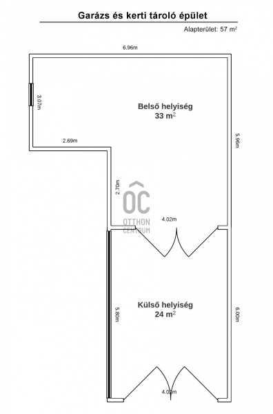A házhoz saját kert, fedett kerti tároló és garázs is tartozik, így a mindennapi használat kényelmes és jól szervezhető.