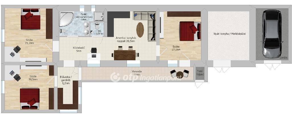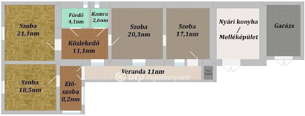 Nettó hasznos 103nm lakóterület. A ház helyiségei: