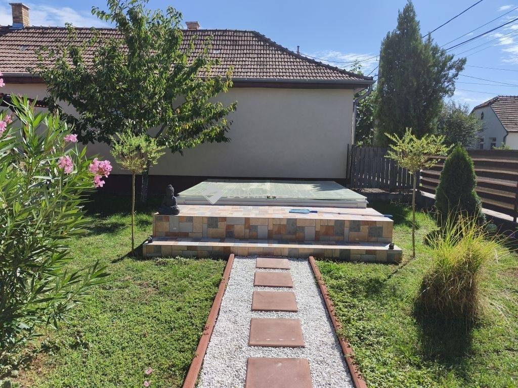 A kert igazi gyöngyszem, amelyet gyönyörű virágok, 3X3-as gépesített süllyesztett medence és egy kerti konyha tesz teljessé, így kiváló helyszín a kikapcsolódásra és családi, baráti összejövetelekre.