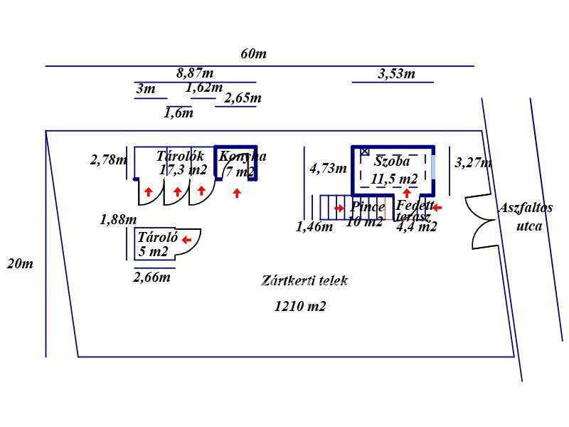 A külső- és belső nyílászárók normál fa szerkezetűek, a bejárat biztonsági ajtóval védett. A közművek közül az épületekben az egyfázisú villany (16 Amper) új réz vezetékeléssel és Fi-relével rendelkezésre áll. A vezetékes víz a telken belül megtalálható, de a házba nincs bevezetve. Fúrt kút házi vízművel és a telek teljes területén öntöző-rendszerrel ellátva kiépítésre került, szennyvíz-elvezetés az utcában megtalálható. Az otthon melegéről korábban fatüzelésű kályha gondoskodott egy falazott vegyestüzelésű kémény elvezetéssel, amely igény szerint a pince fűtését is lehetővé teheti. A pince saját fedett lejáróval, biztonsági ajtóval és szellőző ablakkal ellátott, igény szerint az épület további komfortosítására alkalmas lehet. Az udvar körben bekerített, gyümölcs termelésre kialakított. A telken 28 termő vegyes gyümölcsfa és 80-90 kg hozamú málnás létesült. Az ingatlanba történő bejutáshoz gépjárművek számára az aszfaltos útról kapubejáró biztosított.