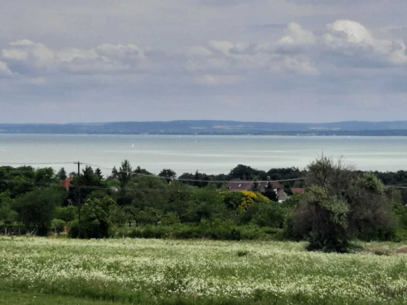 Két oldalról szomszéd épületekkel határolt, néhány méterre az erdőtől, páratlan balatoni panorámával!