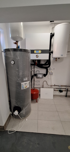 A fűtést hőszivattyús rendszer biztosítja, amely környezetbarát és gazdaságos megoldás, míg a klímaberendezés a nyári hőségben nyújt kellemes hőmérsékletet.