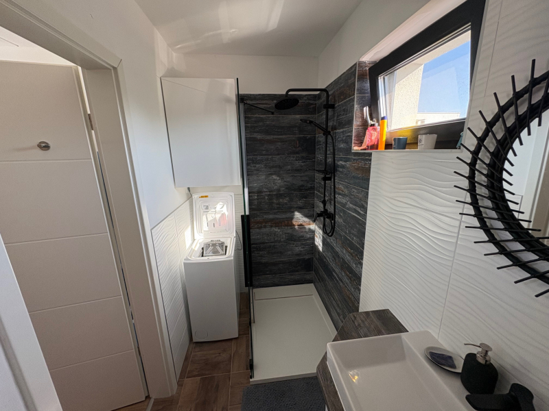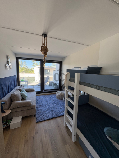 A 2023- ban átadott 54 nm-es lakás a második emeleten található , Balatonra néző panorámával.