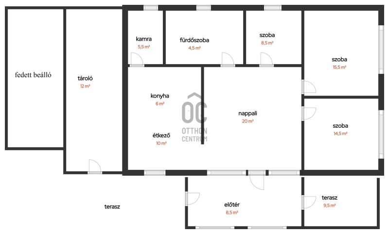 - utcafronti terasz (9nm), hátsó terasz ( 14,8nm), fedett beálló (21 nm)