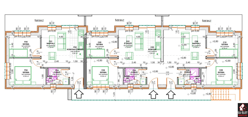 A lakóparkban 5 db 6 lakásos (földszint + egy emeletes) ház épül. 2 db épület lakásai hamarosan átadásra kerül, de EZ A LEGJOBB ELHELYEZKEDÉSŰ ÉPÜLET a lakóparkban, aminek a lakásait ebben a hirdetésben kínáljuk megvételre, mivel ez önállóan áll. (A többi épület esetén közelebb vannak egymáshoz a házak.)
