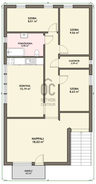 A lakás tágas, világos, jól szeparált helyiségekkel rendelkezik – ideális választás családnak vagy pároknak, akik nyugodt, zöldövezeti környezetben szeretnének élni.